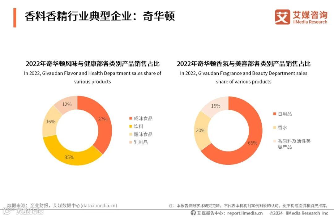 瑞士奇华顿公司是一家研究、开发、生产及销售香料香精的跨国企业,其主要业务领域为风味与健康部和香氛与美容部。奇华顿每年将约10%的营业额投资于研究,用于探索和研究产品新原料和新技术,不断拓展企业原料库和各项产品组合。