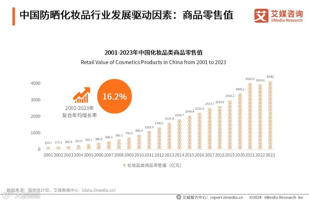 3.中国防晒化妆品行业发展驱动因素:商品零售值