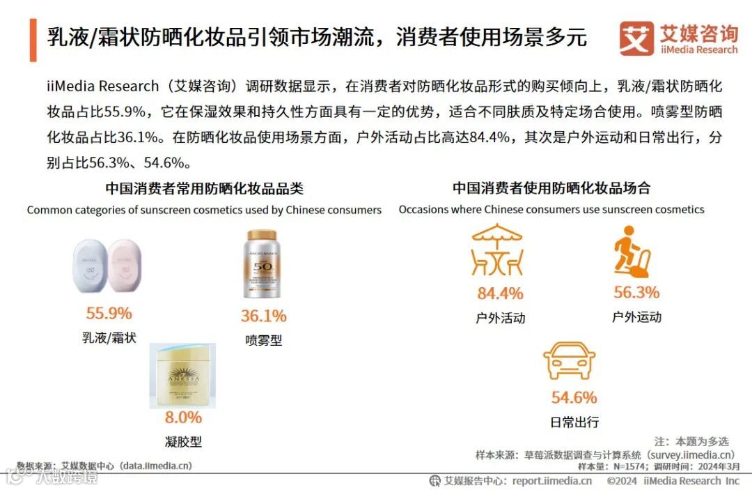 乳液/霜状防晒化妆品引领市场潮流,消费者使用场景多元