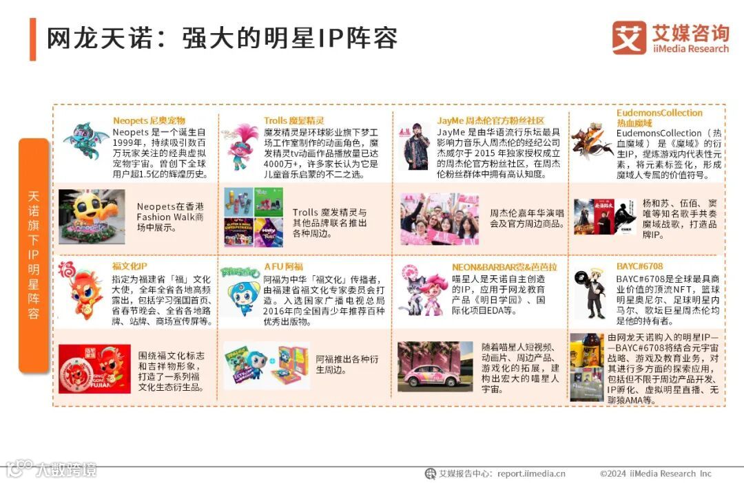 网龙天诺拥有23年的IP开发及运营经验,期间与多个国际化IP创意团队达成合作关系,打造出一个个深受消费者喜爱的明星IP,如Trolls 魔发精灵、Neopets 尼奥宠物等,并与杰威尔合作,建立JayMe品牌。网龙天诺已在互联网中具有一定的品牌影响力及粉丝群体。