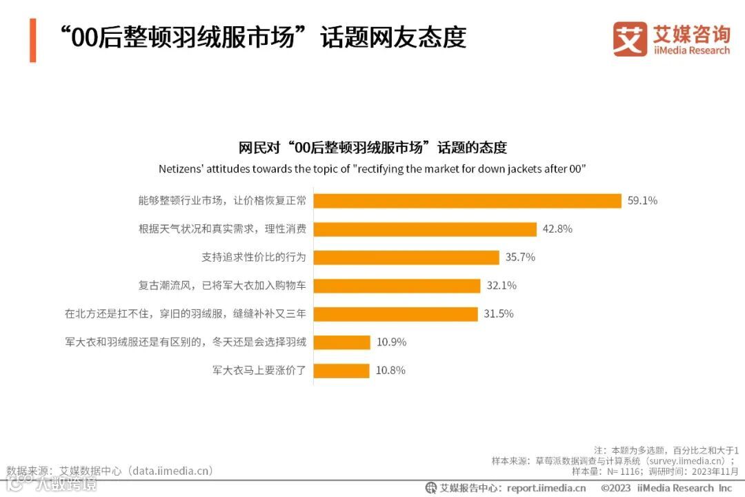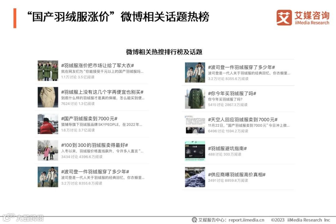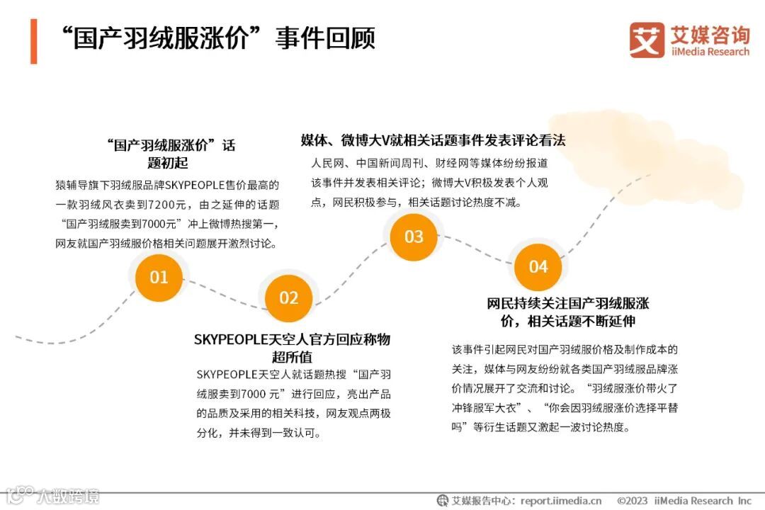 本文内容节选自艾媒咨询发布的《艾媒咨询 | 2023年“国产羽绒服涨价”事件商情监测分析报告》,完整版报告共28页,点击文末 阅读原文 或 长按识别下方二维码 即可获取报告。