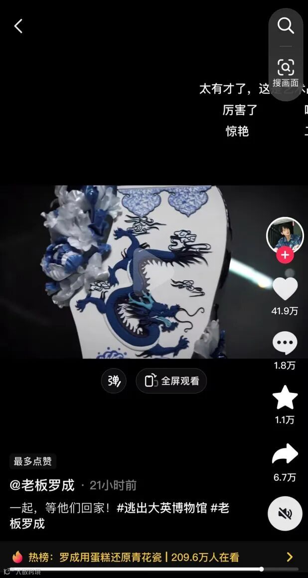 (图片来源于抖音老板罗成发布有关青花瓷视频截图)