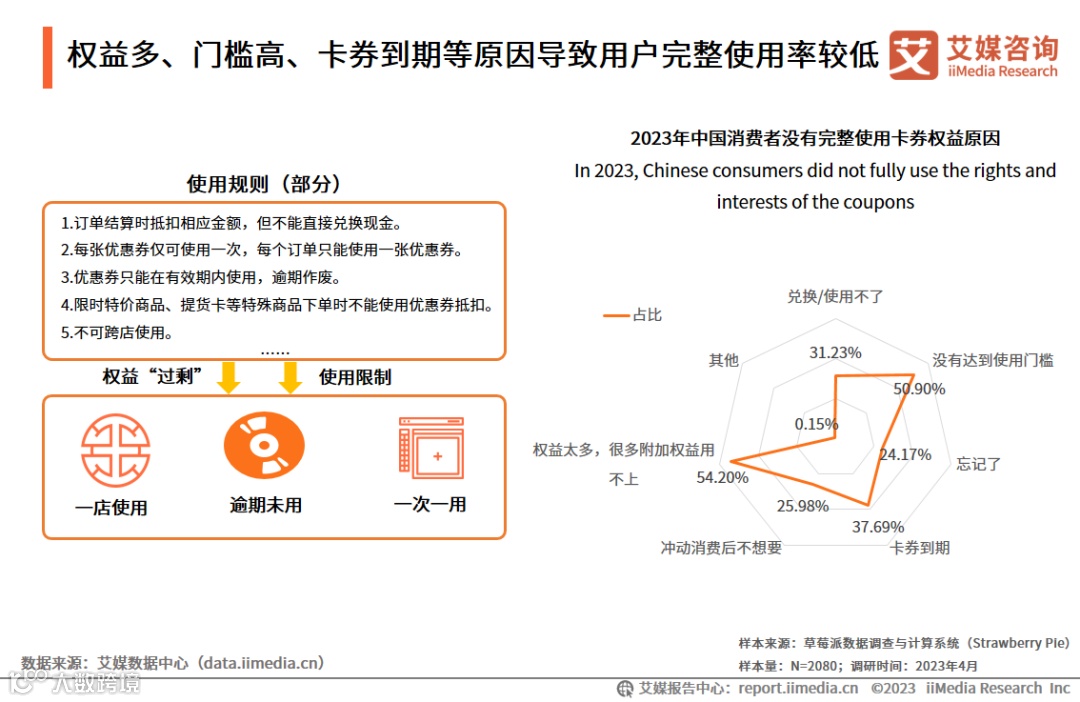权益多、门槛高、卡券到期等原因导致用户完整使用率较低