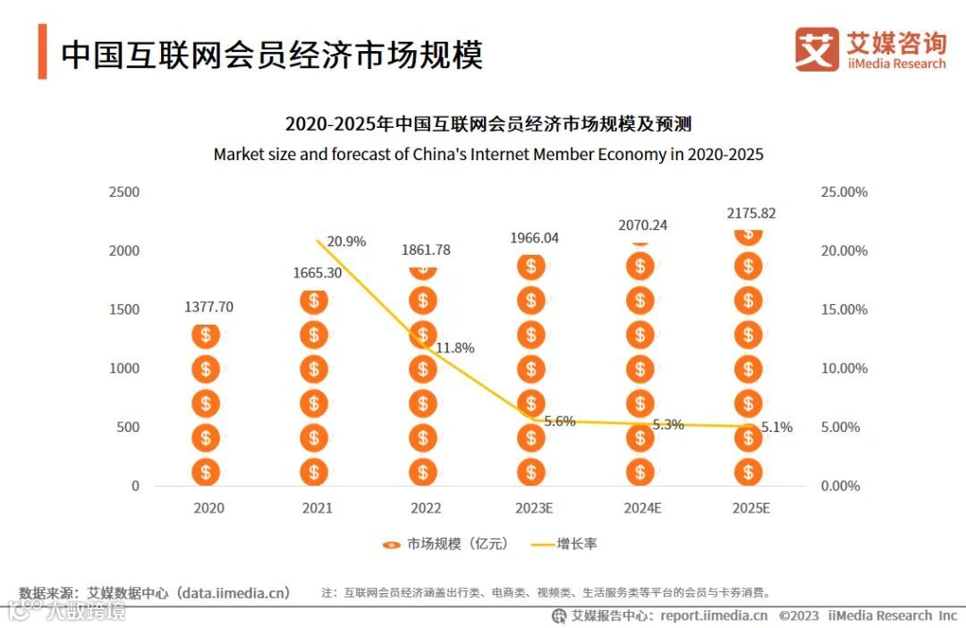 市场规模:中国互联网会员经济市场规模增长态势显著,预计2025年将达2175.82亿元