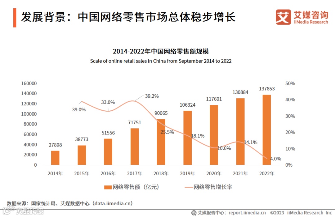 发展背景:中国网络零售市场总体稳步增长