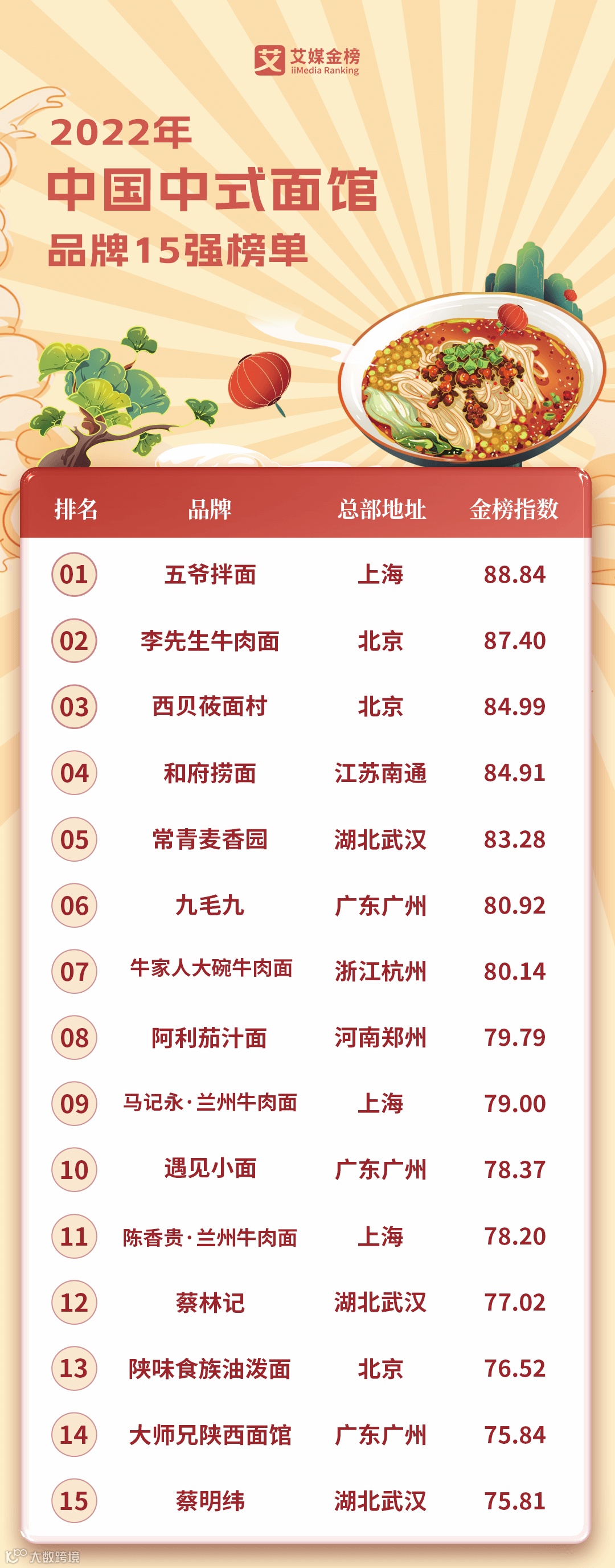 《2022年中国粤菜连锁品牌15强》《2022年中国中式面馆品牌15强》《2022年中国火锅品牌15强》《2022年中国烤肉品牌15强》《2022年中国酸菜鱼品牌15强》《2022年中国中式快餐品牌15强》《2022年中国烤鱼连锁品牌15强》《2022年中国咖啡连锁品牌15强》《2022年中国新锐烘焙连锁品牌15强》《2022年中国新锐卤味连锁品牌15强》《2022年中国茶餐厅连锁品牌15强》《2022年中国鸡排连锁品牌10强榜单》《2022年中国新式茶饮品牌15强榜单》