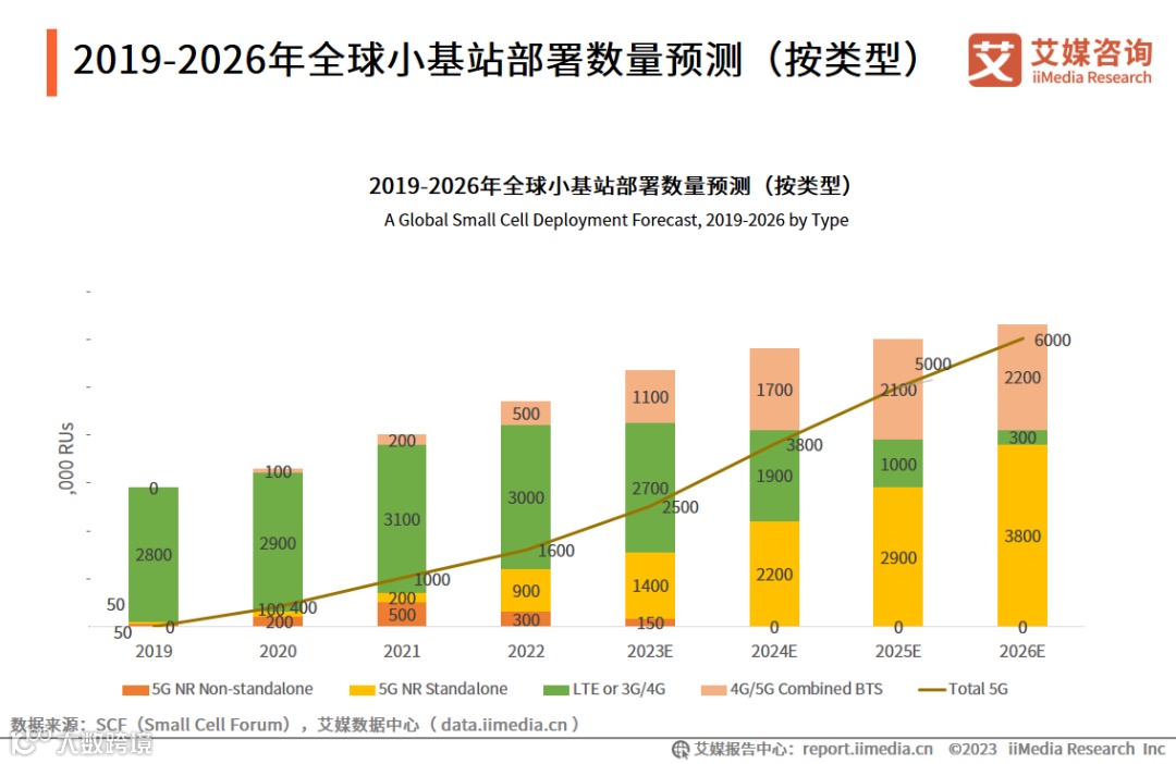 1.2019-2026年全球小基站部署数量预测(按类型)