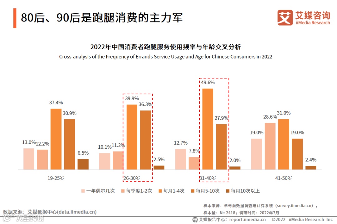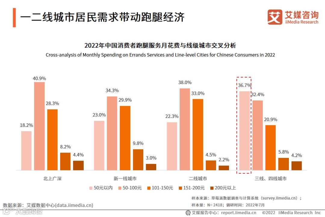 调研数据显示,在19-25岁消费者中,有37.4%每月使用跑腿服务1-4次;目前三线、四线及以下城市跑腿消费者占比仅为24%。艾媒咨询分析师认为,Z世代(出生于1995-2009年间)追求生活质量,乐于接受新事物,将逐步成为跑腿消费的主力军。而三四线城市的市场基础和规模并不亚于一二线城市,随着供需两端的发展,将成为跑腿经济的新机遇。