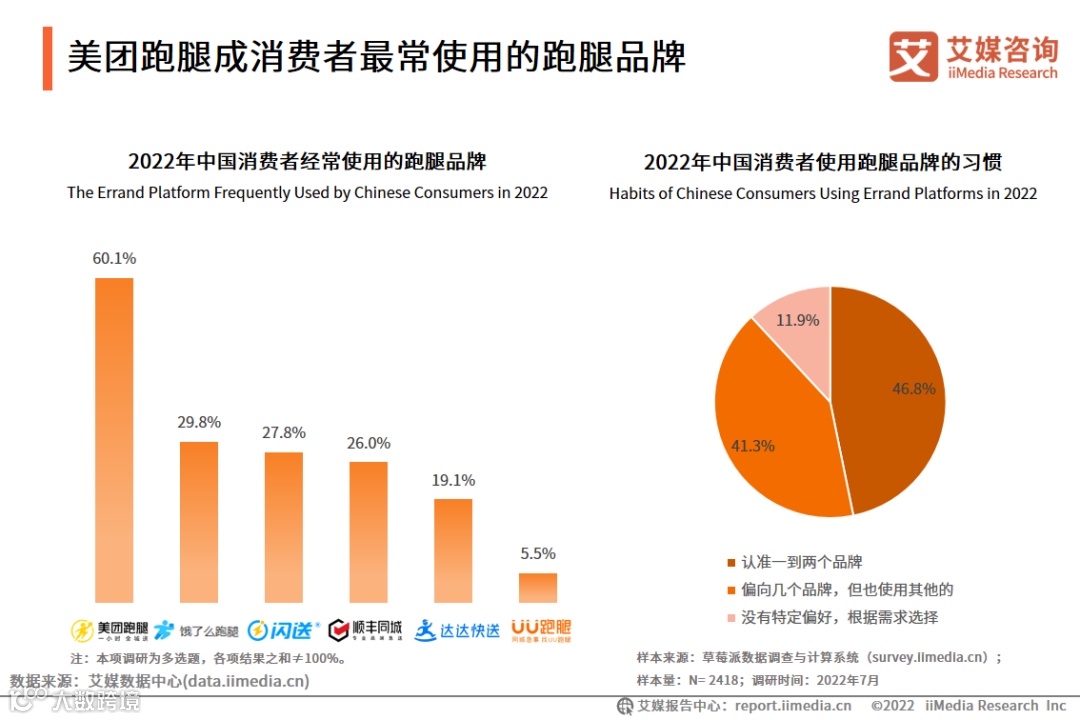 7.美团跑腿成消费者最常使用的跑腿品牌