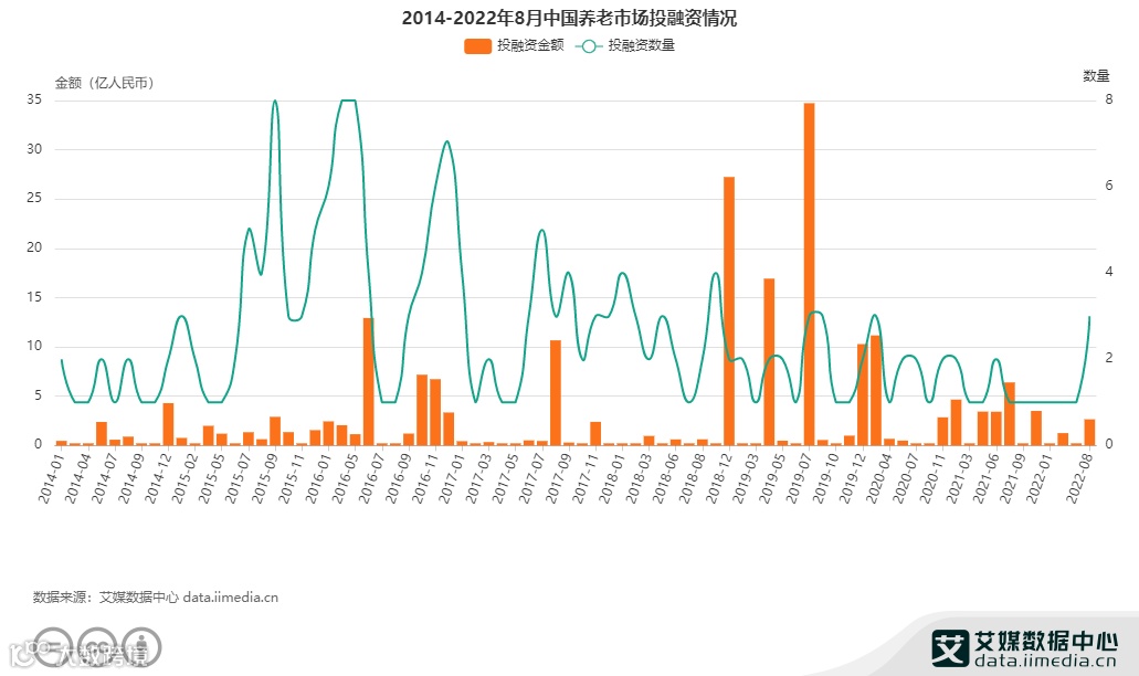 数据显示,2014至2022年8月中国养老市场投融资金额总计207.8亿元,投融资数量共计197起,投融资事件金额较高。资本对养老产业的布局越来越看重。