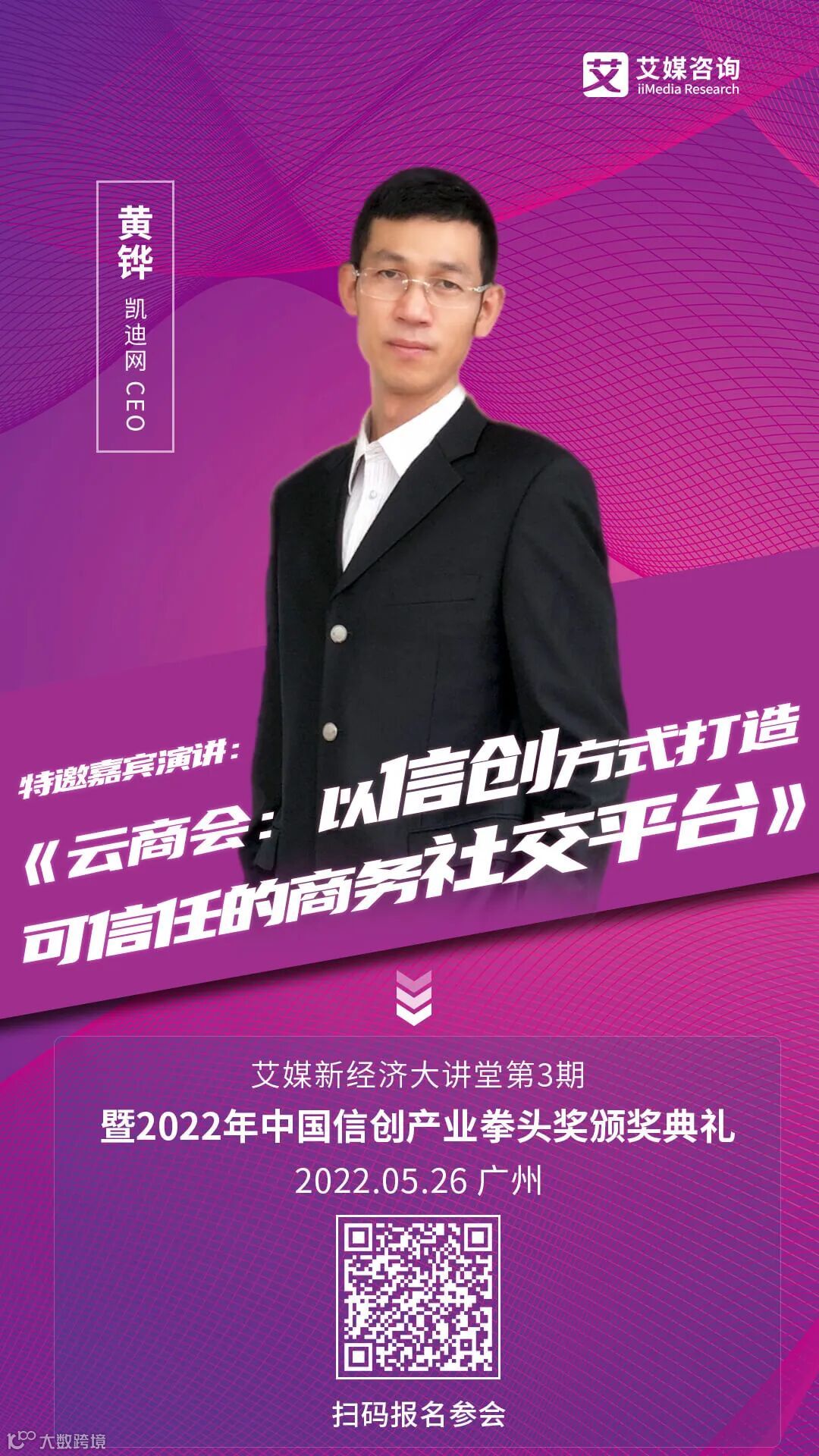 本次活动,艾媒咨询邀请了凯迪网CEO黄铧。黄铧先生有超过20年互联网资深从业经验,在活动现场,他将发表题为《云商会:以信创方式打造可信任的商务社交平台》的主旨演讲,分别从政策、技术和产业应用角度,分享深入独到的见解。