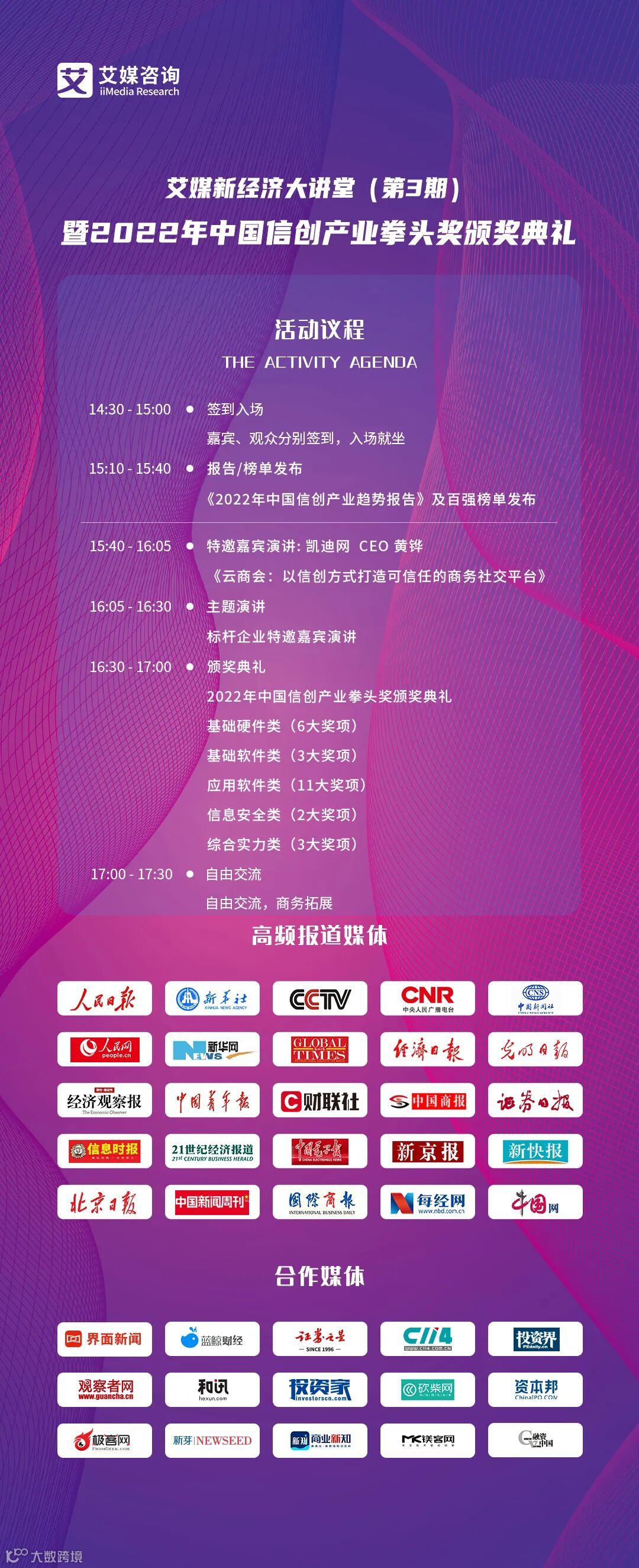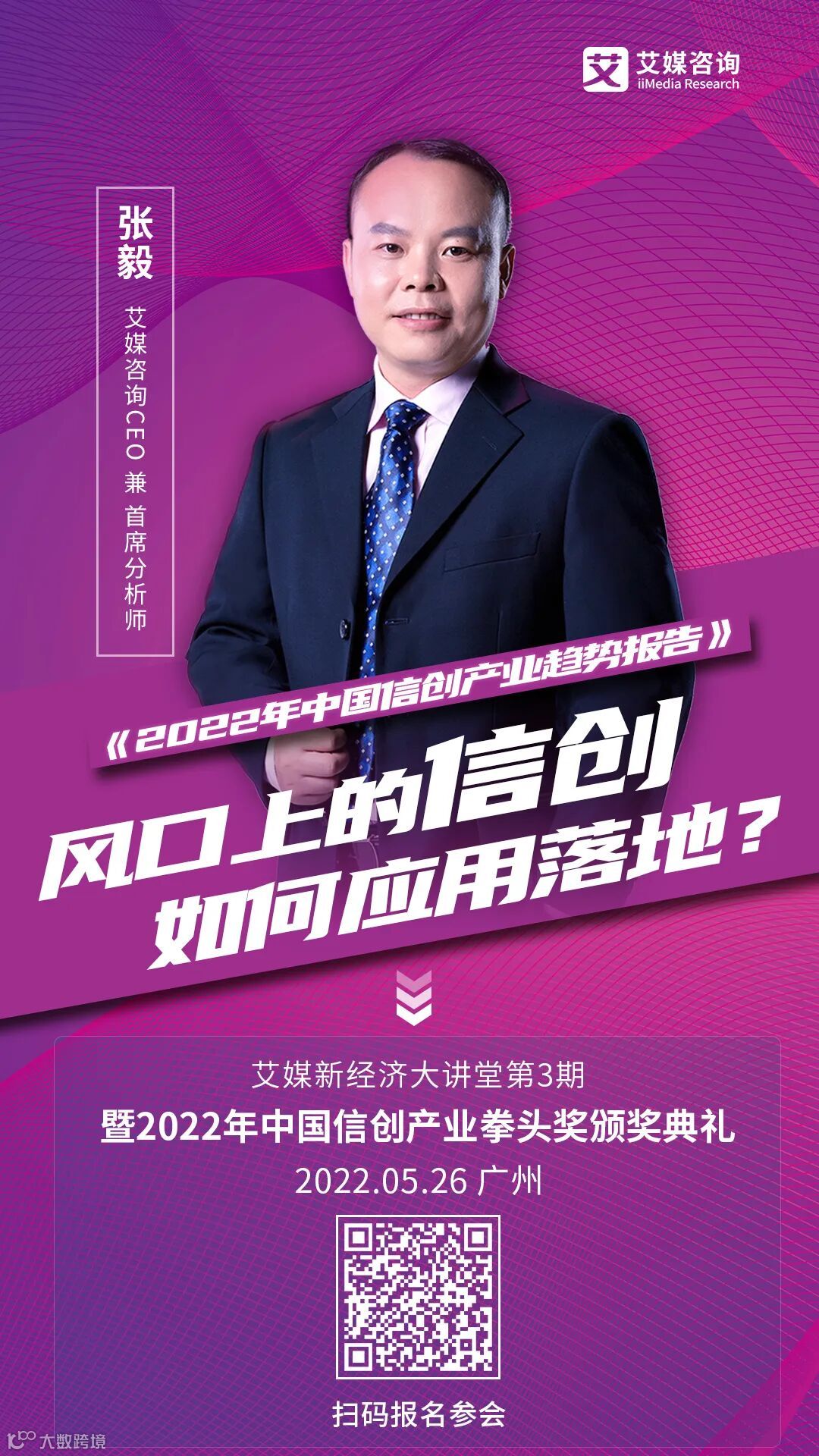 为搭建信创产业交流合作平台,助力信创产业纵深发展,全球知名的新经济产业第三方数据挖掘和分析机构iiMedia Research(艾媒咨询)将于5月26日在广州举办“艾媒新经济大讲堂(第3期)暨2022年中国信创产业拳头奖颁奖典礼”。