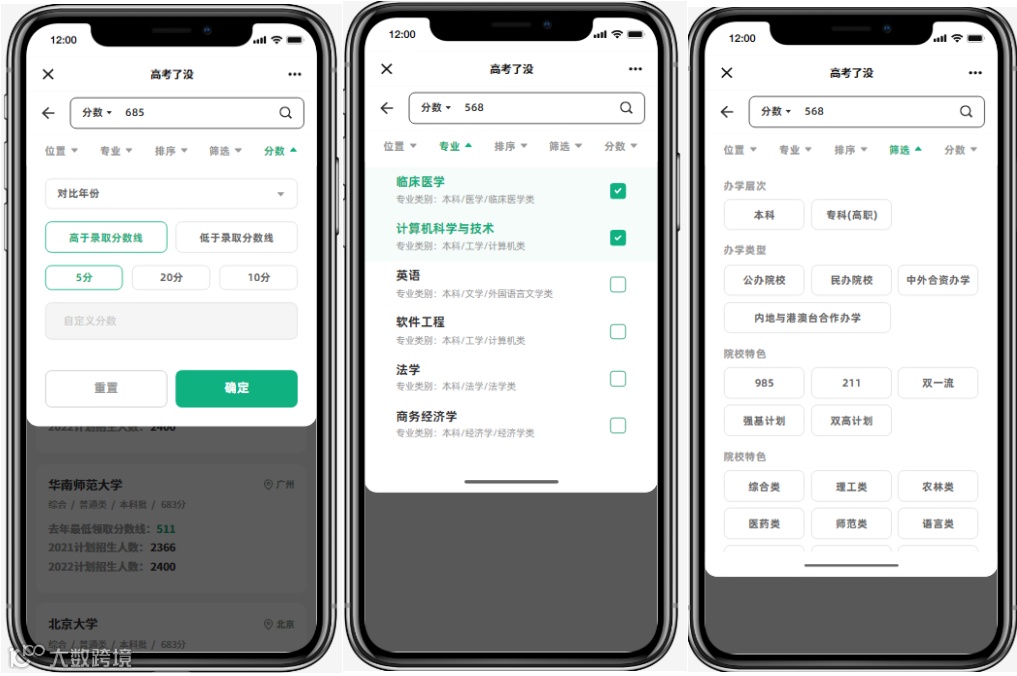 (3)搜分数,可根据省份、专业、学校特色、分数线等作为筛选条件,系统将为您推荐符合要求的院校详情。