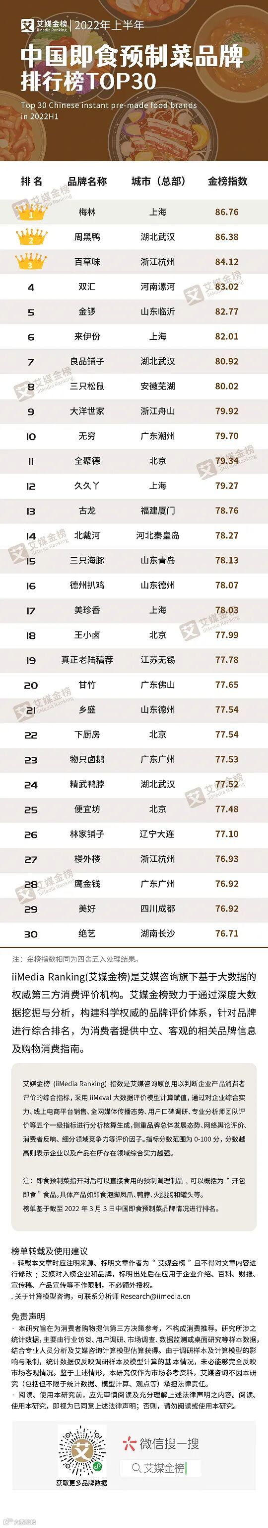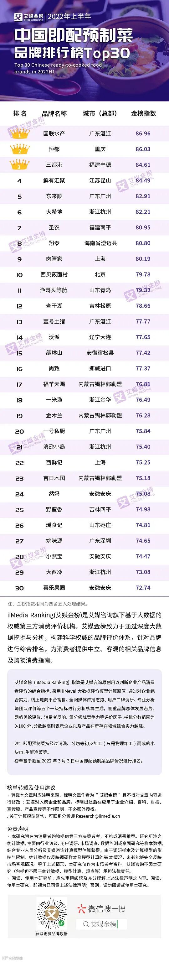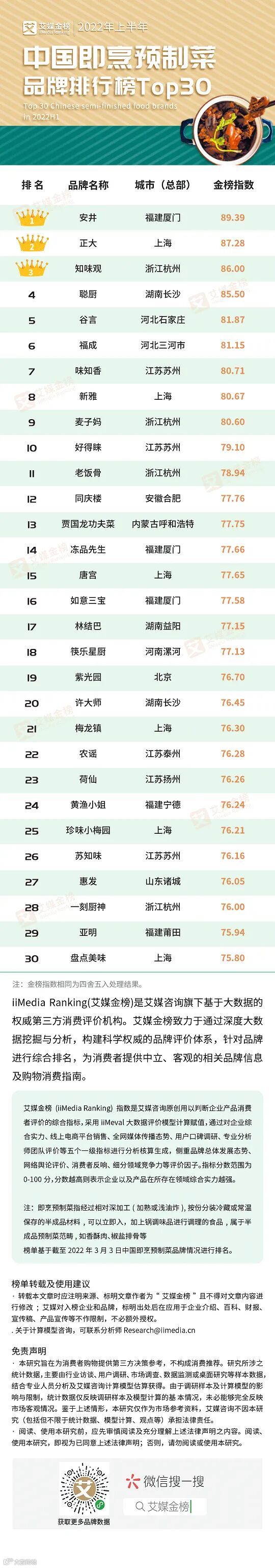 据悉,”2022年上半年中国预制菜行业金榜榜单评选”由全球领先的第三方数据挖掘与分析机构iiMedia Research (艾媒咨询)主办,评选设立6大榜单,吸引超百家企业角逐行业标杆,获得数十万网友的关注与投票。