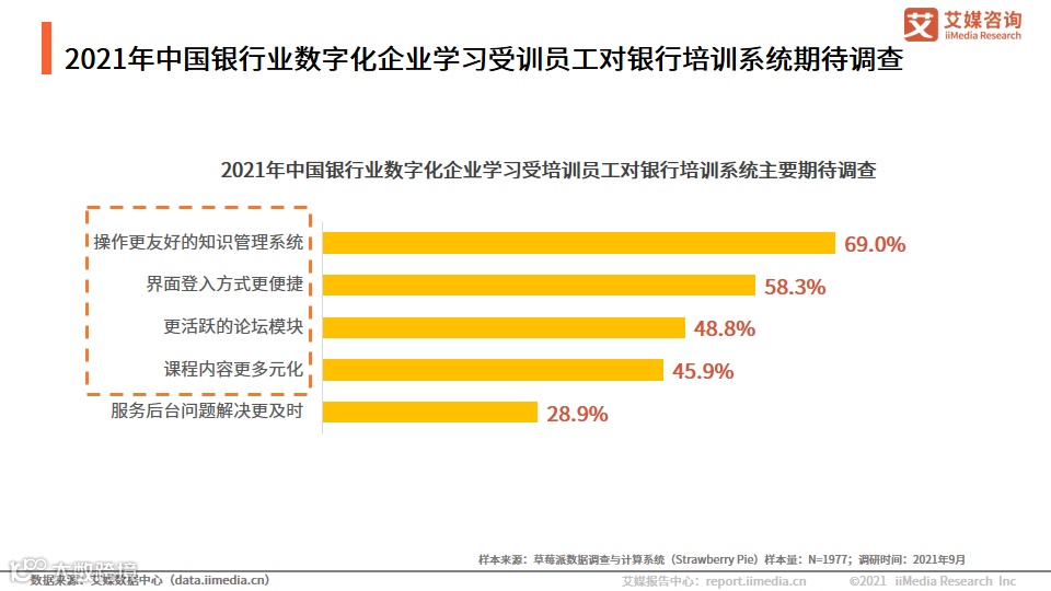 2021年中国银行业数字化企业学习培训组织者对银行培训系统期待调查