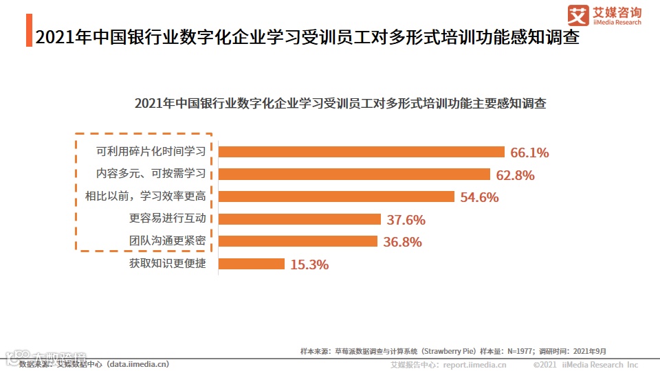 15. 2021年中国银行业数字化企业学习培训组织者对多形式培训功能感知调查