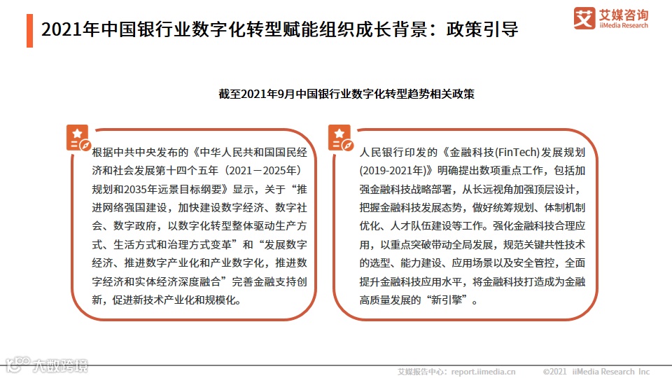 2021年中国银行业数字化转型赋能组织成长背景:政策引导