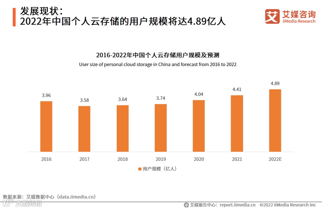用户规模:预计2022年中国个人云存储的用户规模达4.89亿人