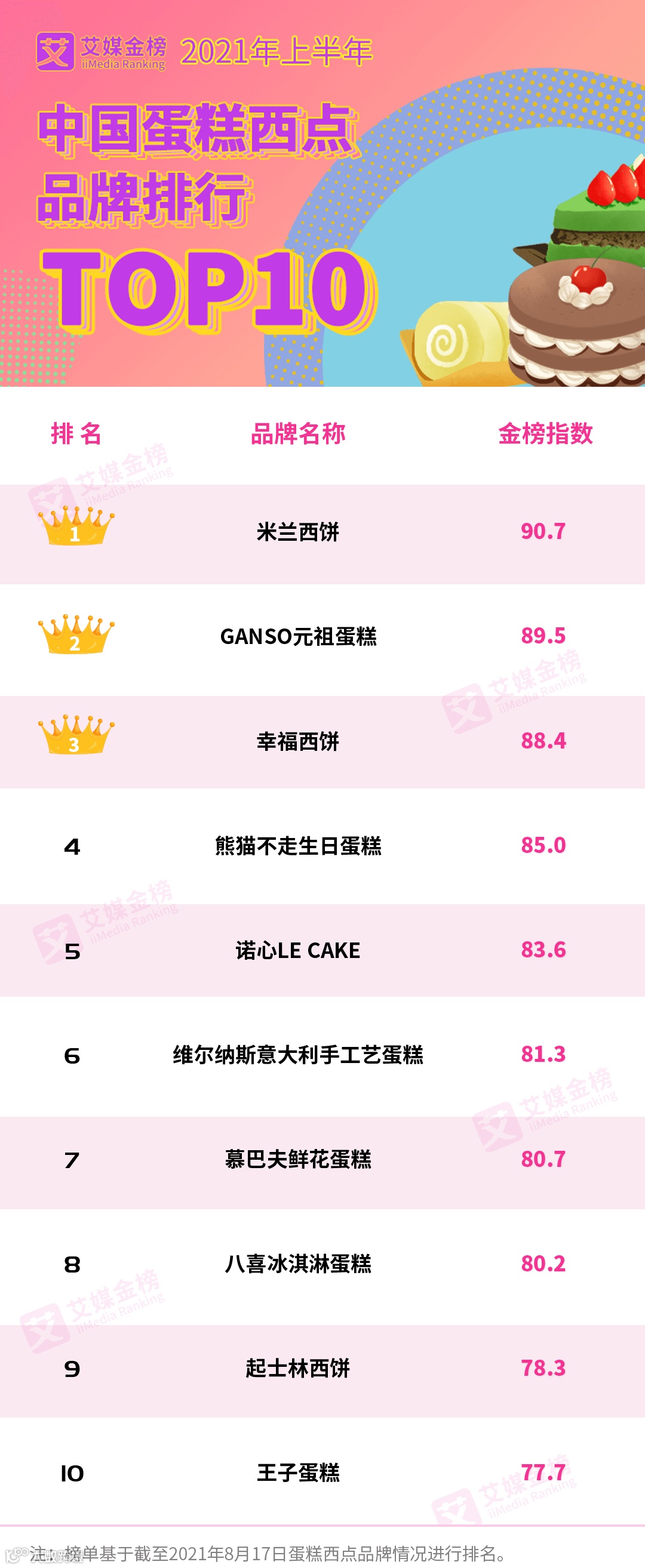 ▲2021上半年中国蛋糕西点品牌排行TOP10