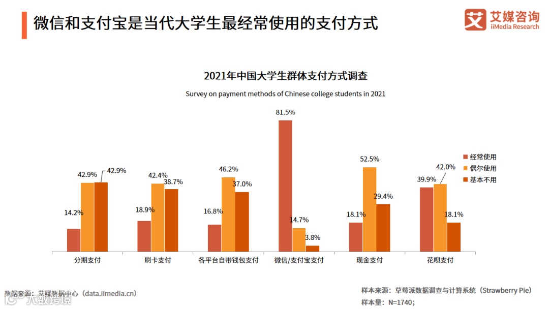 1. 微信和支付宝是当代大学生最经常使用的支付方式