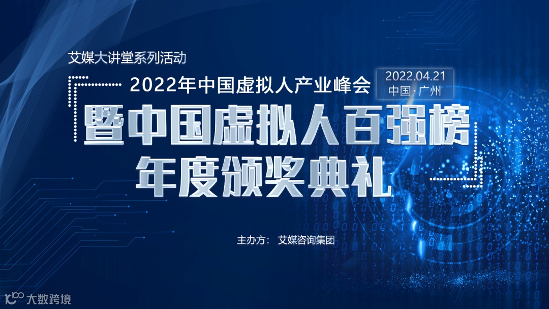 为搭建虚拟人产业供需互动平台,促进虚拟人产业健康发展,全球知名第三方数据挖掘和分析机构iiMedia Research(艾媒咨询)将于2022年4月21日在广州举办艾媒大讲堂系列活动“2022年中国虚拟人产业峰会暨中国虚拟人百强榜年度颁奖典礼”。