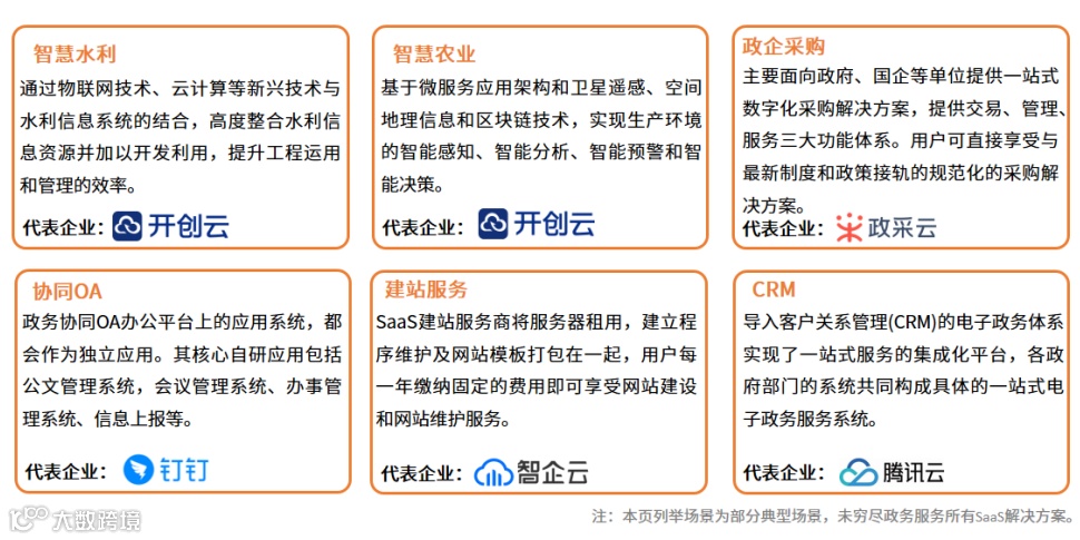 许多SaaS服务商关注到政务数字化的痛点和日益增长的需求,陆续进入这个细分市场并推出众多包括建站服务、政务智能、政企采购、协同OA等在内的政务服务产品和解决方案。