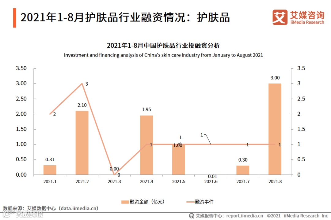2. 2021年1-8月护肤品行业融资情况:护肤品