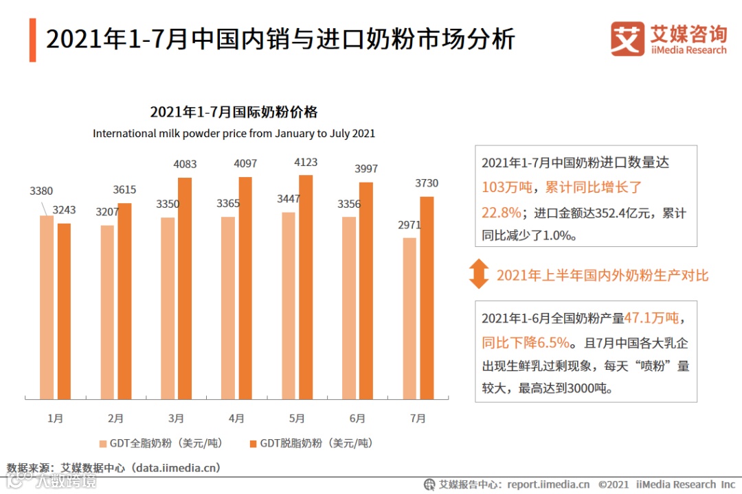 5. 2021年1-7月中国内销与进口奶粉市场分析