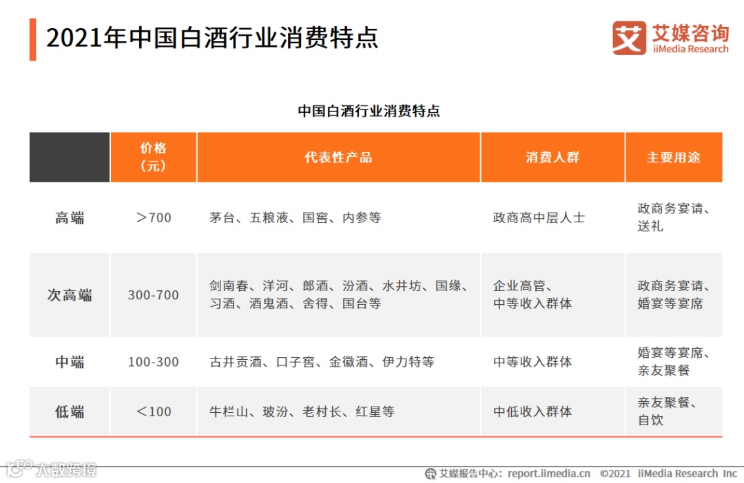 中国白酒消费集中于重要节日、聚餐、婚宴消费场景,不同价格带白酒消费人群、用途存在明显差异。