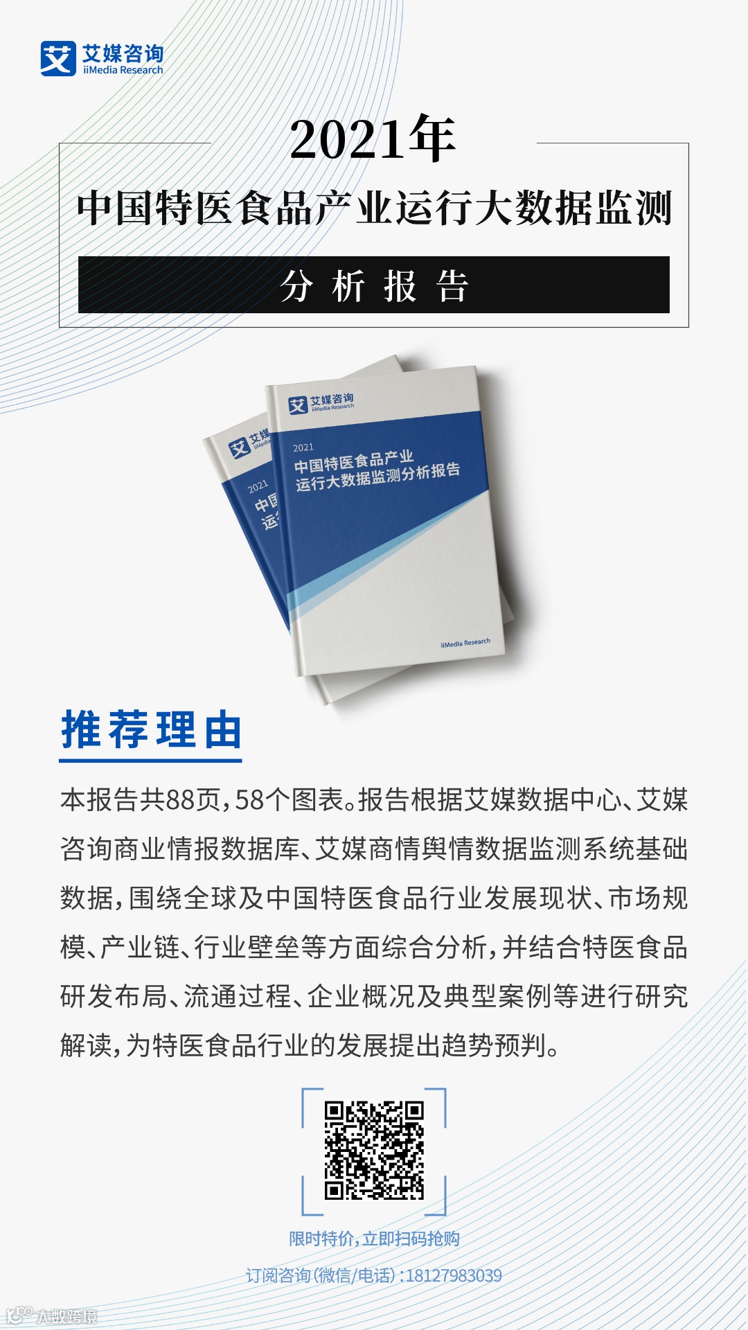 为了更好地研究特医食品产业的发展现状及前景,艾媒咨询最新发布了《2021年中国特医食品产业运行大数据监测分析报告》,该研究报告对特医食品行业发展背景、市场规模、产业链、产品研发布局等现状进行详细分析,围绕特医食品行业消费者行为、典型企业案例进行深度研究,对行业未来发展挑战及趋势综合解读。