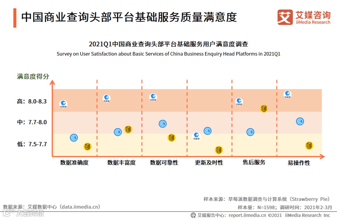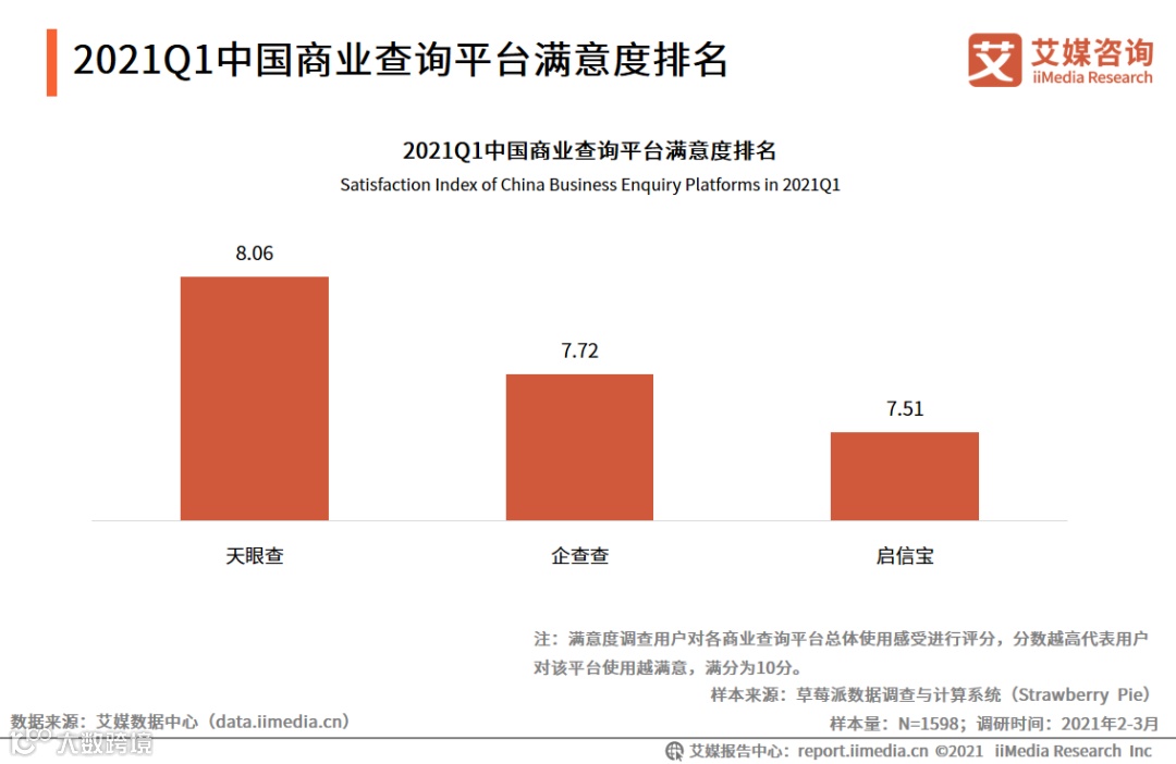 3.2 2021Q1中国商业查询平台主要进阶服务满意度