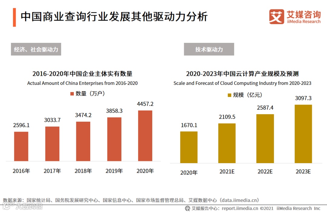 与此同时,随着云计算及大数据技术的落地应用,商业查询平台能够更有效对公开数据信息进行深度挖掘和处理分析,为用户提供更多样化的服务,进一步推动行业发展。