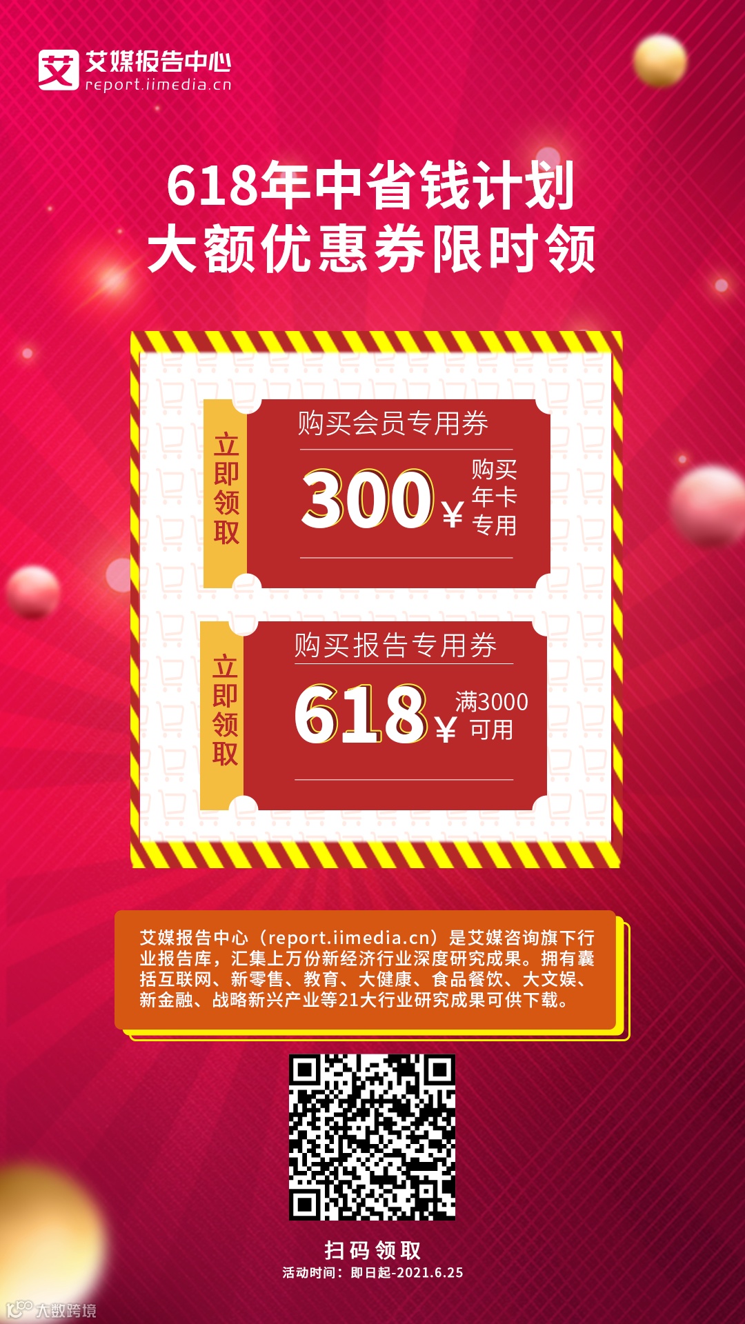 · 优惠券可用于艾媒报告中心平台上购买年度会员;