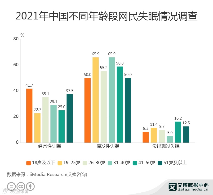 19-25岁网民中,有65.9%偶发性失眠
