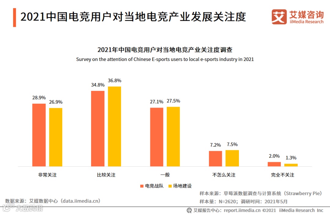 2021中国电竞用户对当地电竞产业发展关注度