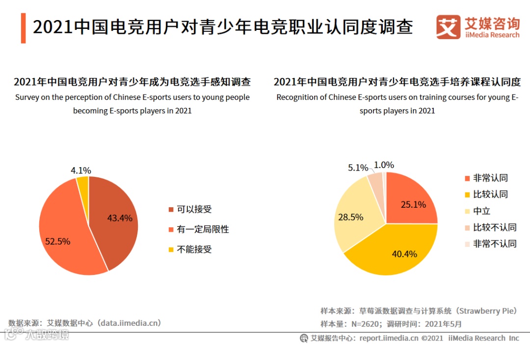 2021中国电竞用户对青少年电竞职业认同度调查