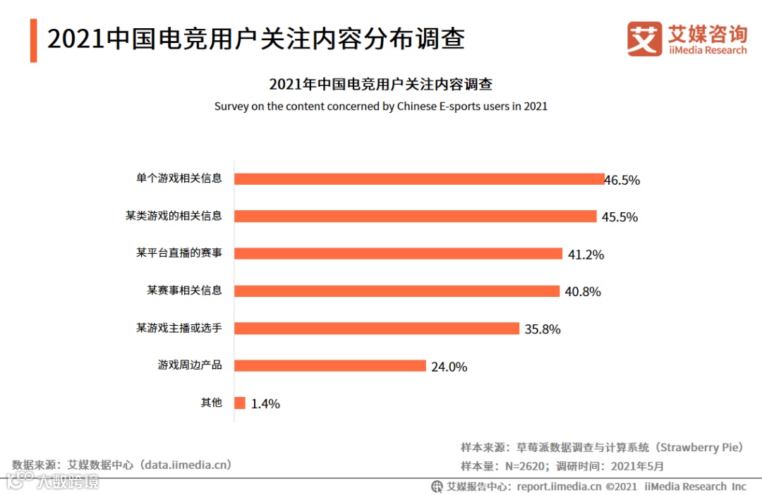 2021中国电竞用户关注内容分布调查