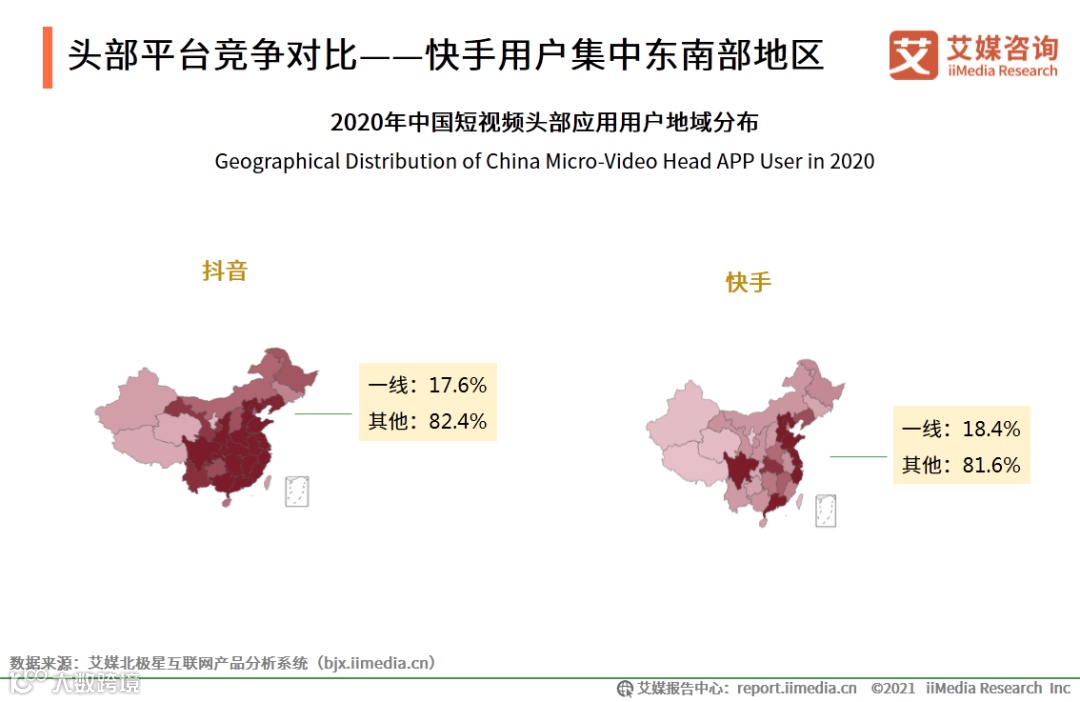 头部平台竞争对比——快手用户集中东南部地区
