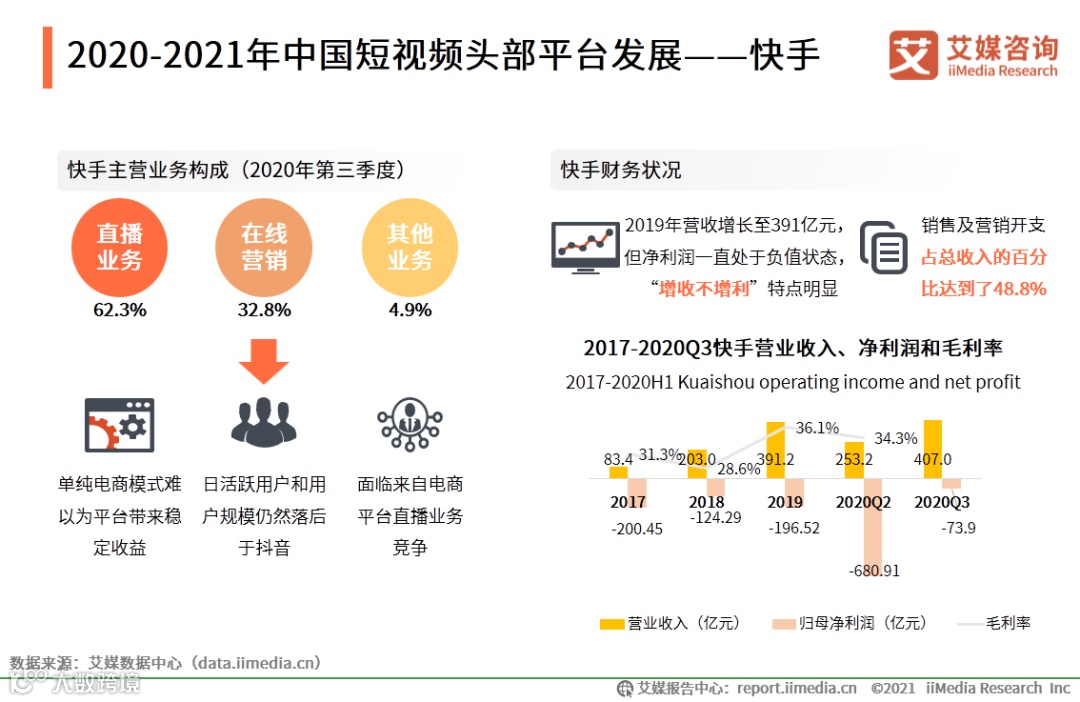 2020-2021年中国短视频头部平台发展——快手