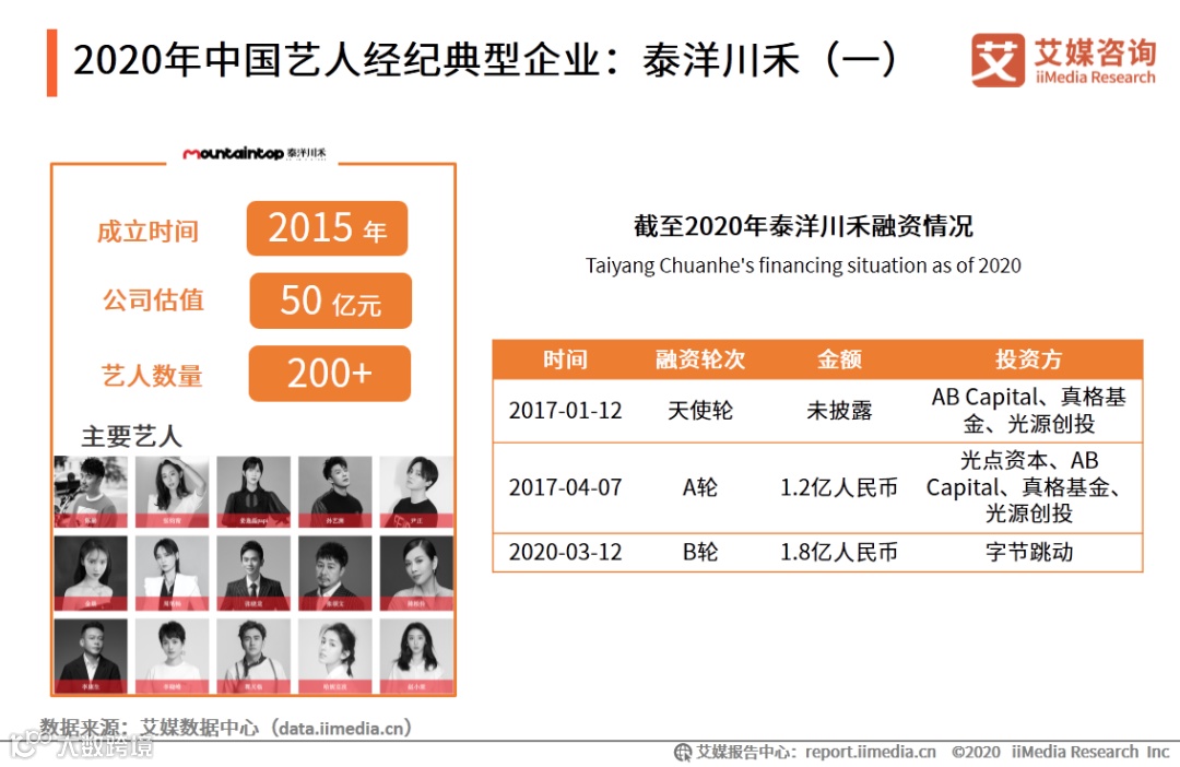 2020年中国艺人经纪典型企业:泰洋川禾(一)