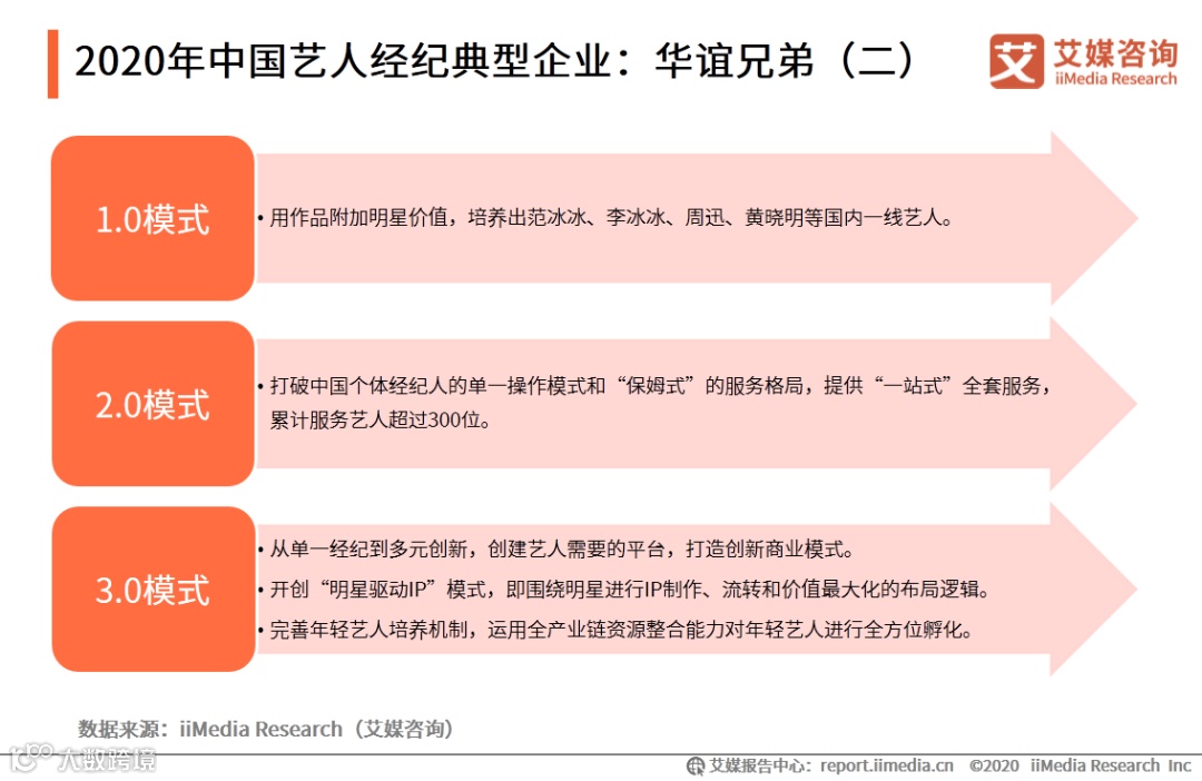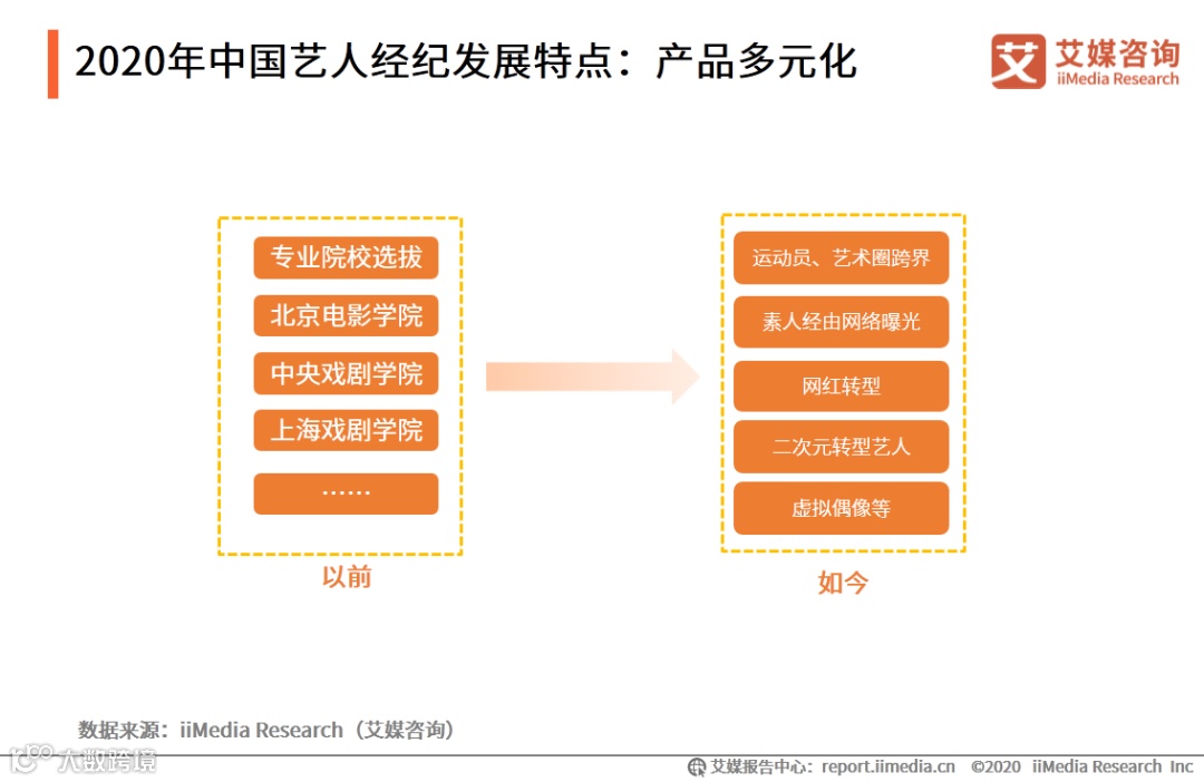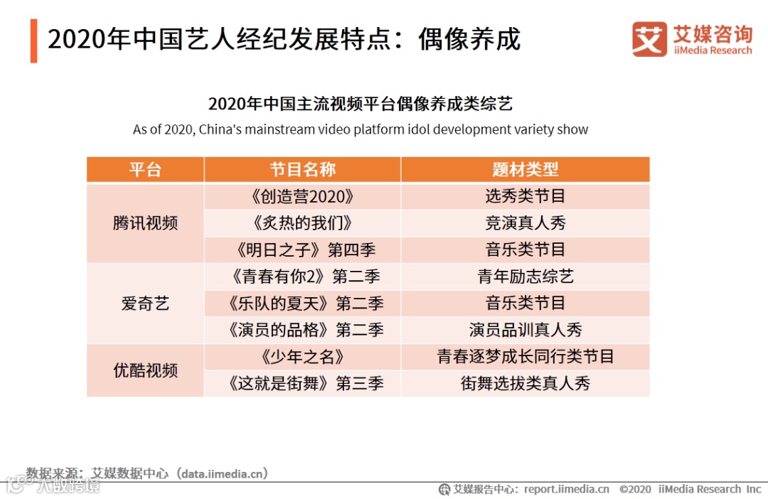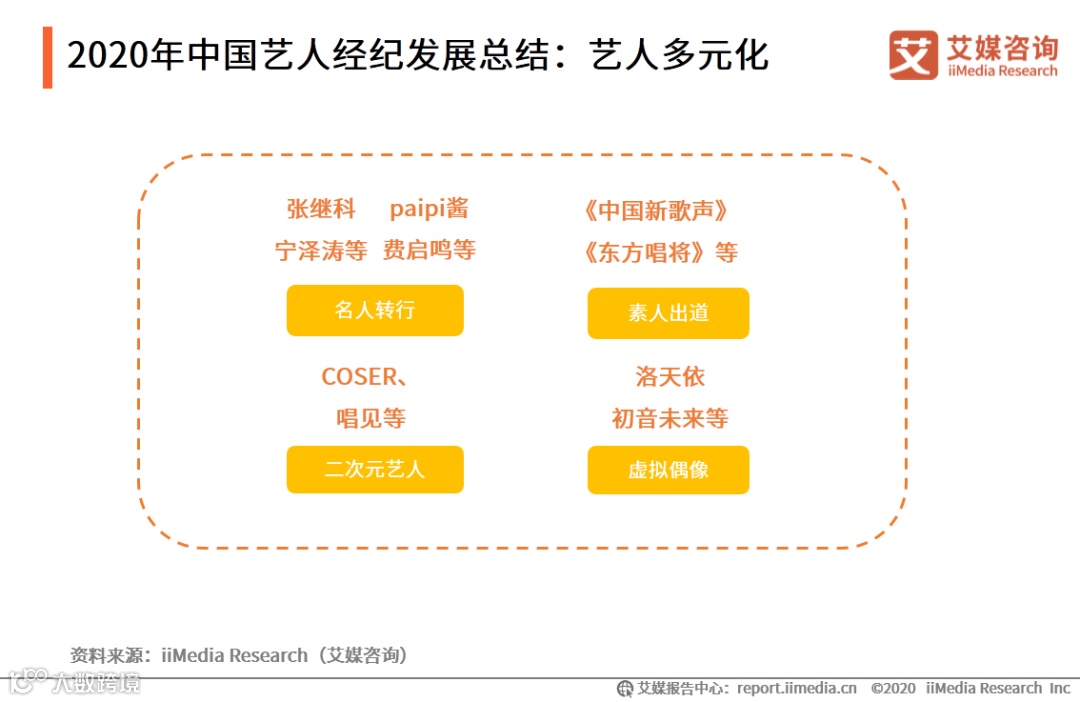 以上内容源自艾媒咨询发布《2020年中国艺人经纪市场发展现状及典型企业分析报告》,完整版共83页;限于公众号篇幅,故仅摘部分数据和观点,如有兴趣深入,移步报告中心官网下载。