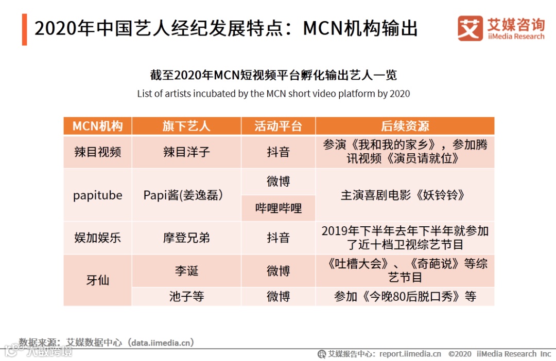 2020年中国艺人经纪发展特点:MCN机构输出
