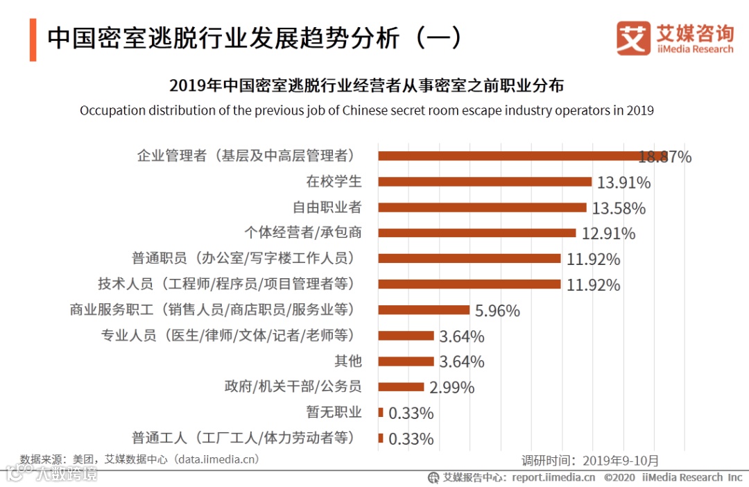 以上内容源自艾媒咨询发布《2020年中国密室逃脱行业发展现状及用户行为洞察分析报告》,完整版共62页;限于公众号篇幅,故仅摘部分数据和观点,如有兴趣深入,移步报告中心官网下载。