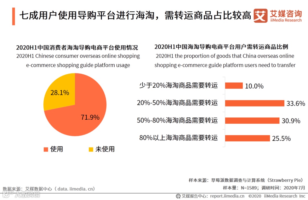 6. 七成用户使用导购平台进行海淘,需转运商品占比较高