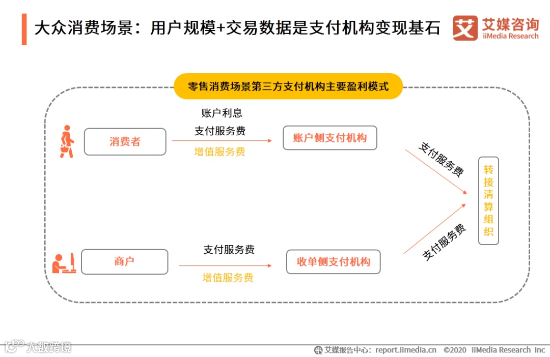 2. 大众消费场景:用户规模+交易数据是支付机构变现基石