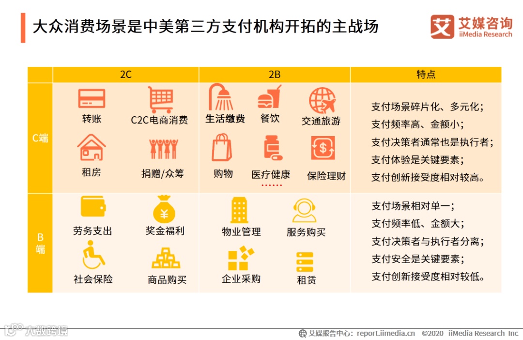 1. 大众消费场景是中美第三方支付机构开拓的主战场