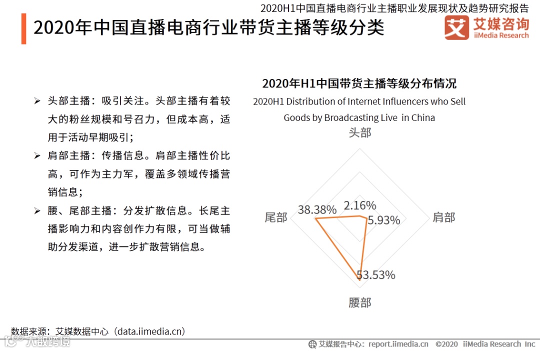 《艾媒咨询|2020H1中国直播电商行业主播职业发展现状及趋势研究报告》等