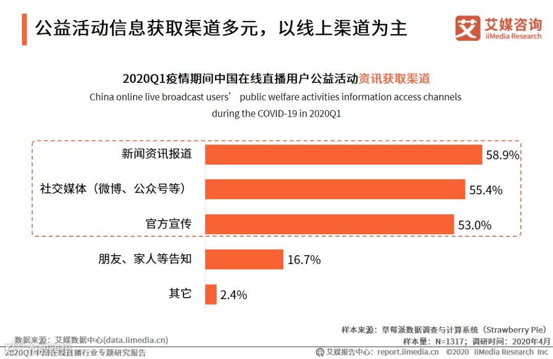 8. 2020Q1疫情期间中国在线直播用户公益活动资讯获取渠道