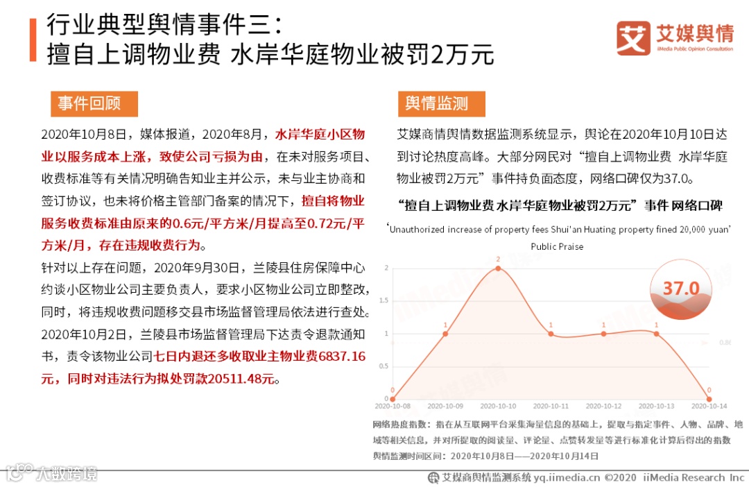 3. 行业典型舆情事件三:擅自上调物业费 水岸华庭物业被罚2万元
