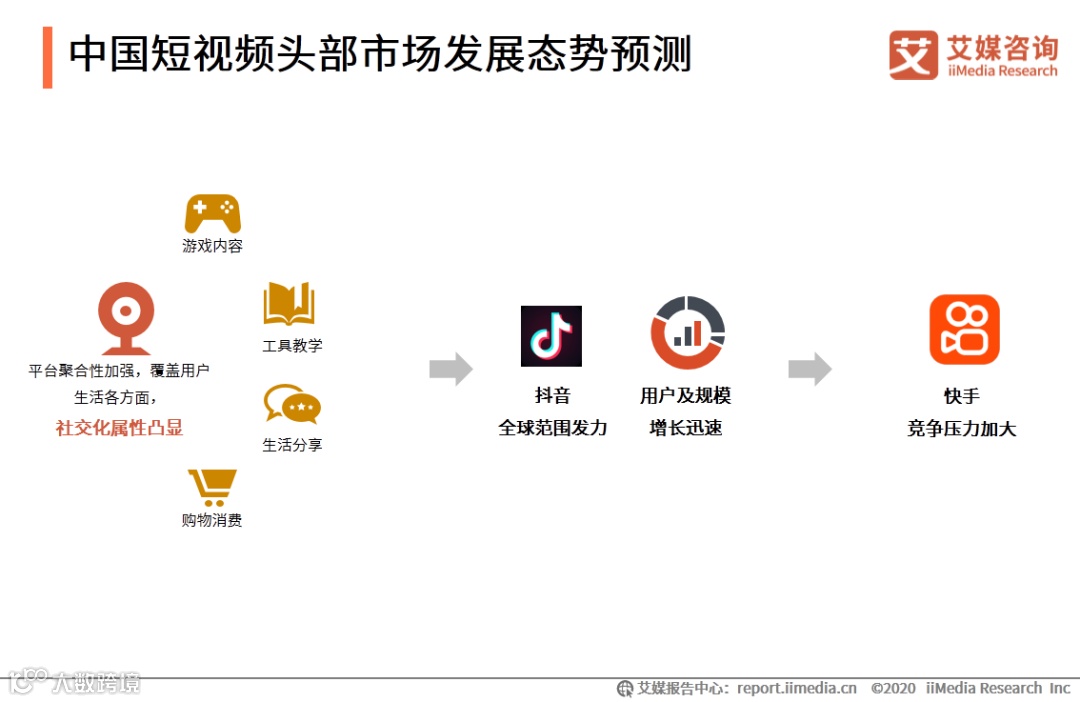 以上内容源自艾媒咨询发布《2020年中国短视频头部市场竞争状况专题研究报告》,完整版共27页;限于公众号篇幅,故仅摘部分数据和观点,如有兴趣深入,移步报告中心官网下载。